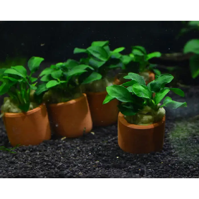 Simply place the terracotta pot anywhere in your aquarium—no planting or special substrate needed. Ensure the rhizome stays above the potting medium to prevent rot. Remove any old or damaged leaves as needed to keep the plant healthy.