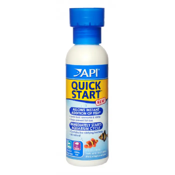 API Quick Start 118mL is a beneficial bacteria supplement designed to help you safely start or maintain your freshwater aquarium. By adding live nitrifying bacteria, API Quick Start helps establish the biological filter faster, converting harmful ammonia and nitrite into less toxic nitrate. This makes it easier to set up new tanks, add new fish, and recover after filter maintenance or water changes.